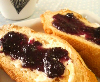 薄くスライスしたバゲットをカリッとトーストし、バターとジャム。