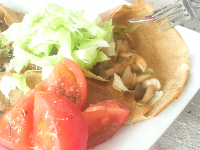 今日は玉ねぎとシメジをバターとハーブでソテーしたものにレタスの細切りを乗せて☆