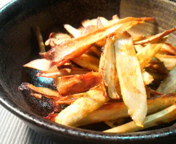 炒め揚げにします。油を切って塩とカレーパウダーで