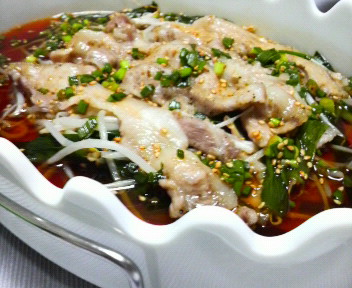 最後に醤油・酢・胡麻油・白胡麻・あさつきを混ぜて作ったタレを回しかけて完了。