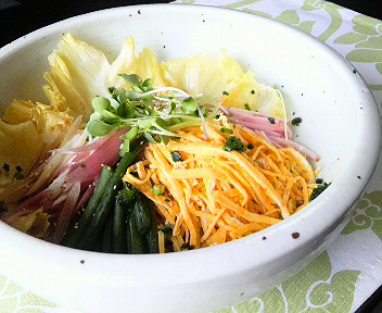具は・・・卵・ハム・茗荷・いんげん・貝割れ・レタス。