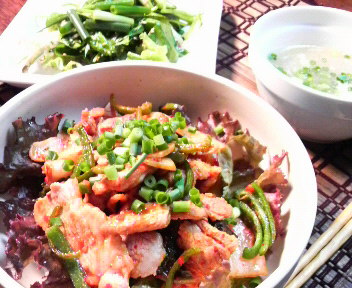 冷蔵庫のお掃除を兼ねて、あるものじゃんじゃん入れた昼ごはん。