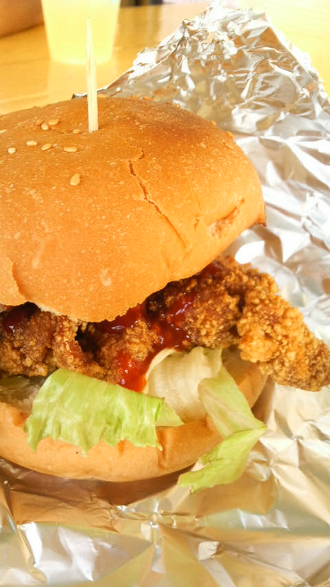 写真は昨日食べた台湾人のやっている屋台の唐揚げバーガー。