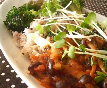 貝割れを彩り代わりにたくさん乗せて食べました♪