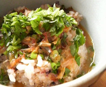 あさつき、青海苔、鰹節を入れて、味付けはシンプルに醤油。
