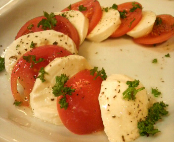 夕飯はミートソースのパスタと、カプレーゼ。