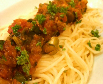ブロッコリーときのこのミートソースパスタ